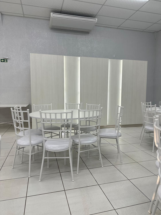 Louças, Mesas, Cadeiras e Toalhas.